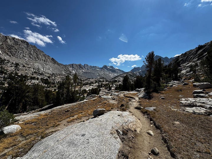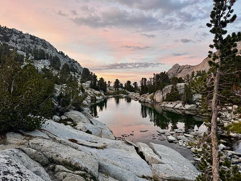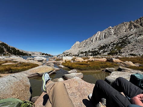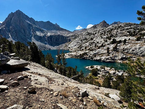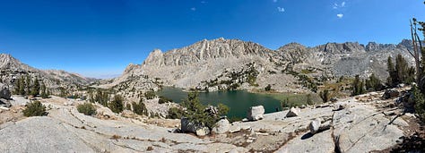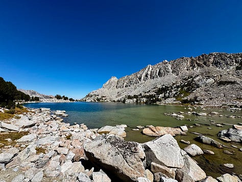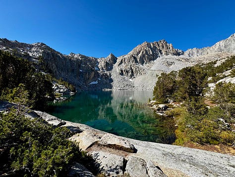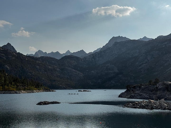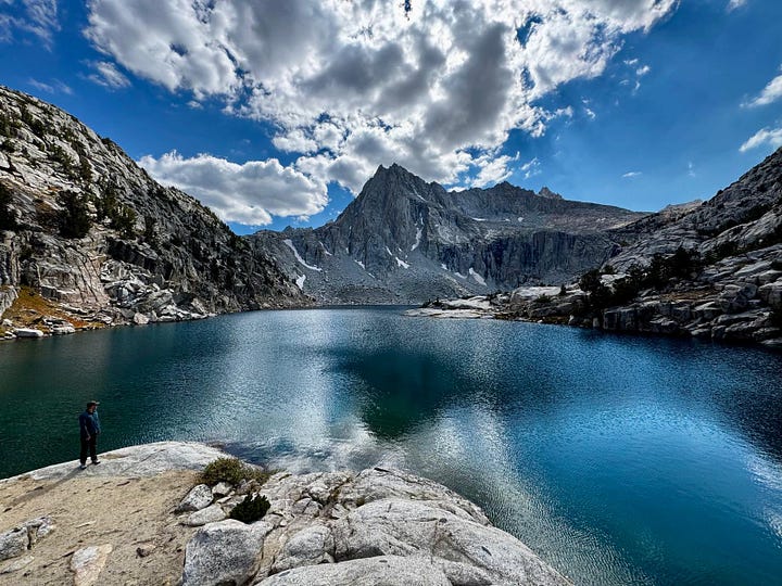 From camp we pushed to Midnight Lake, then over to Moonlight. Each climb was brutal — steep and relentless — but the payoff was surreal: glass-clear water, ridgelines circling like ancient walls, and silence so heavy it pressed against your chest.