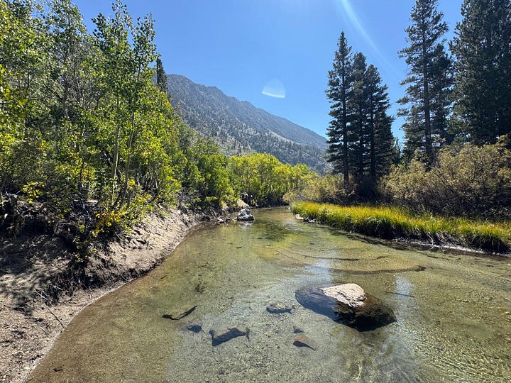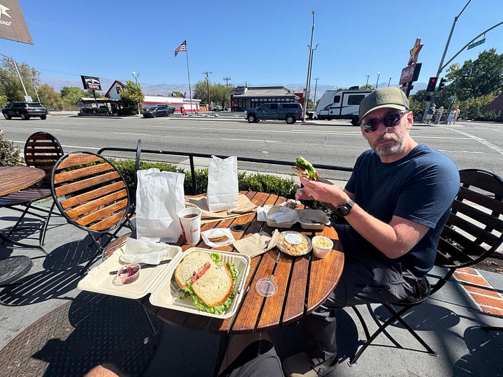 We rolled out of Glenn’s driveway around 7 a.m., two guys with packs heavier than our sense of preparation. The drive took us through Bishop, where we did the only respectable thing you can do there: stop at Schatz Bakery. A sandwich, a danish, and the unspoken truth — this would be the last real food before backpacking misery began.