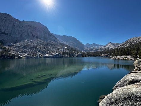 Moonlight was the real gem — electric blue, windswept, beautiful. One lone camper had set up a luxury spread at the far end. We passed by, amused, and claimed our own stretch of shoreline. From there we could have pushed toward Echo Lake, but bouldering across talus fields didn’t feel worth the gamble. Instead, we sat. Watched. Let the mountain strip us of everything but presence.
