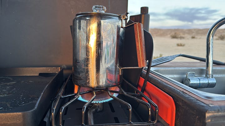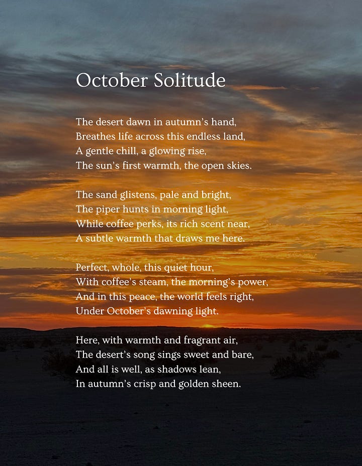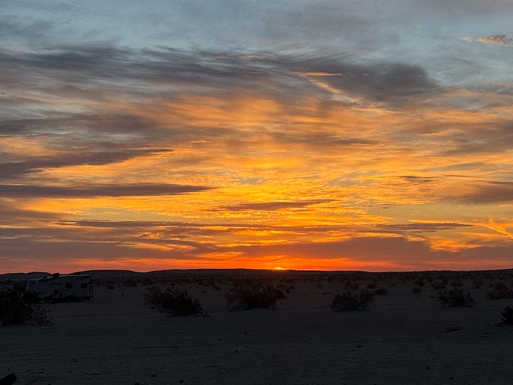 One of the things I really enjoy about the desert is the mornings and the evenings. I love to wake up early just before the sun rises make my cup of coffee and enjoy the crisp of the air. As I am sitting in my chair, I see a little sandpiper like bird Chirping looking at me bouncing around. He seemed a little out of place. The sun rise, and the colors in the air are beautiful, oranges, yellows purples, and of course, the green speckled about in the desert.